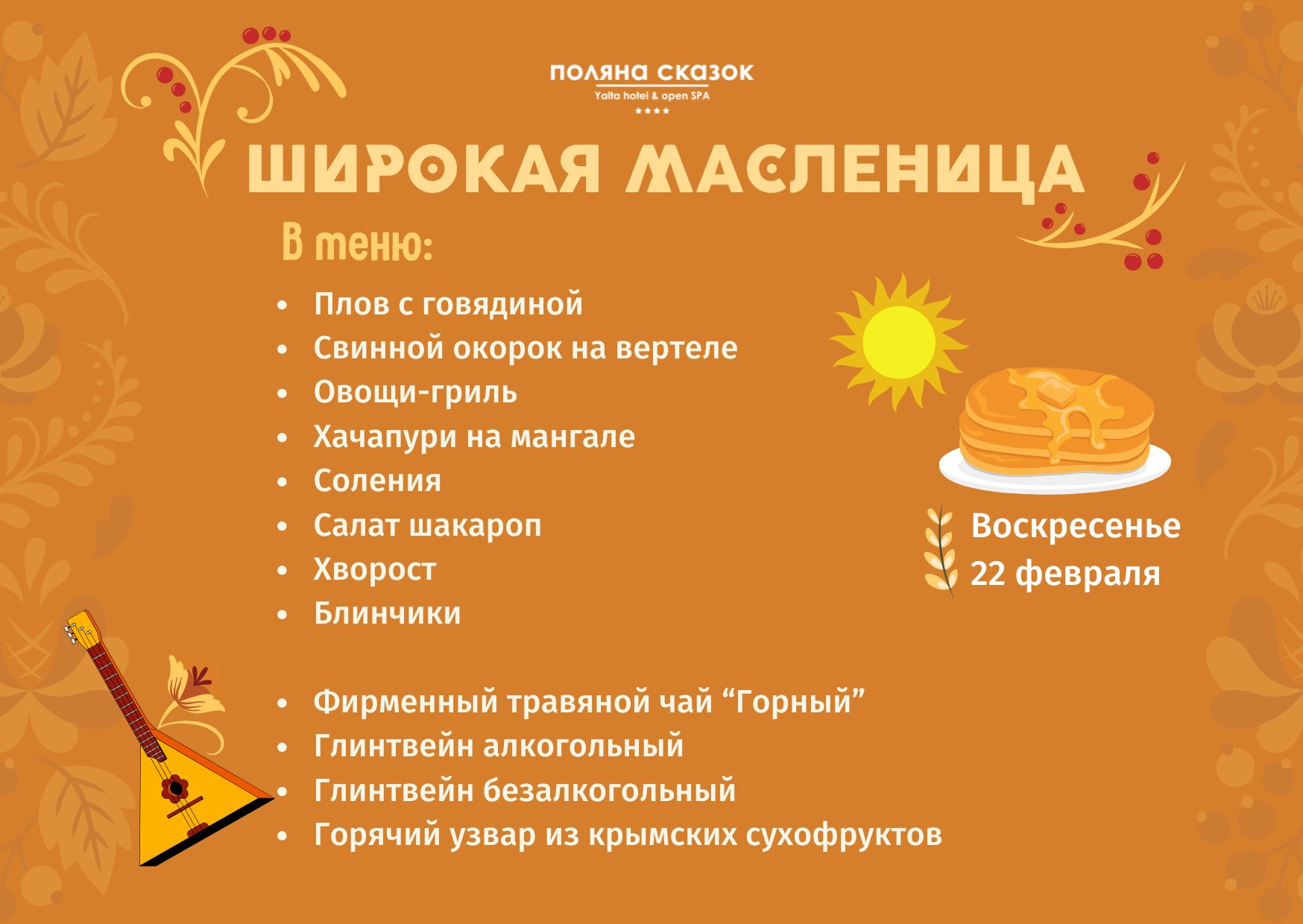 22 февраля в нашем отеле — двойной праздник! Приглашаем отпраздновать Широкую Масленицу и День Защитника Отечества: тёплая атмосфера, душевное общение и весёлые традиции.
