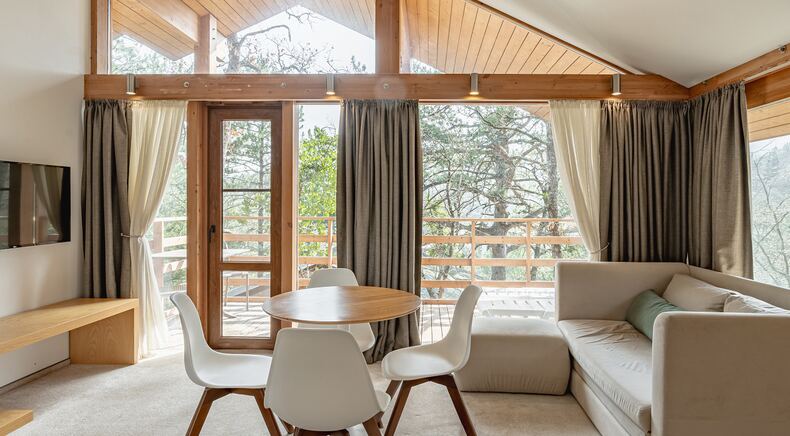 Бронируйте коттедж для спокойного семейного отдыха или заезжайте дружной компанией! Здесь можно расслабиться у широкого панорамного окна с видом на лес и горы. В вашем распоряжении – панорамный бассейн и акватермы с видом на горы, сауна, мангал и другие развлечения на территории отеля, доступ к вайфай, парковка. До набережной Ялты – всего 10-15 минут езды.